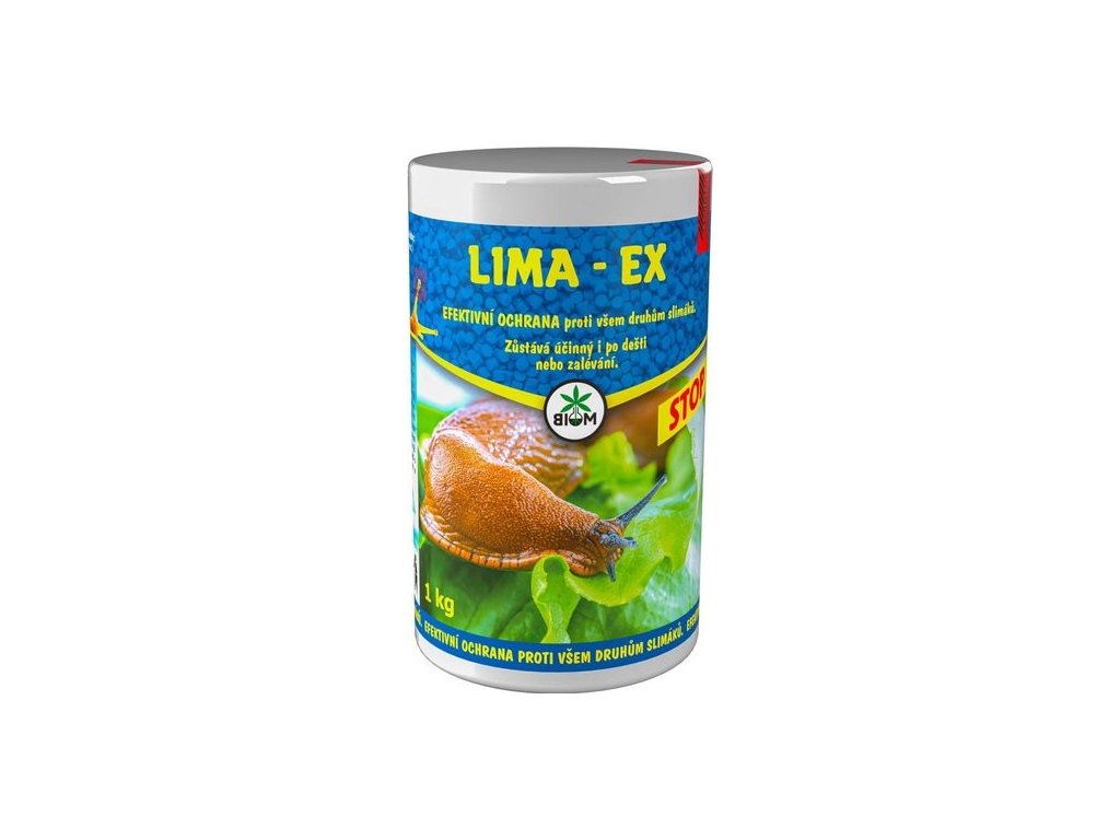 LIMA – EX je moluskocid ve formě granulované návnady k ochraně polních plodin, zeleniny, ovocných rostlin, trávníku a okrasných rostlin proti slimákům, plžům a hlemýžďům. Díky obsahu rostlinných atraktantů je pro ně vysoce atraktivní. Účinkuje dlouhodobě. Obsahuje zhořčovadlo, které zabrání psům a kočkám v konzumaci. Je vysoce odolný vůči dešti a vlhku.